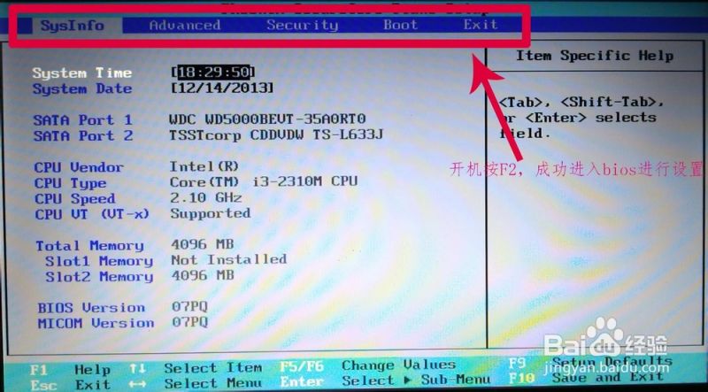 根据自己电脑的不同,再刚进入开机启动画面的时候按相应的键进入到bios。三星笔记本电脑的是F2。如下图所示: