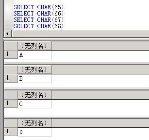 2、CHAR() 将ASCII 码转换为字符。如果没有输入0 ~ 255 之间的ASCII 码值,CHAR() 返回NULL 。