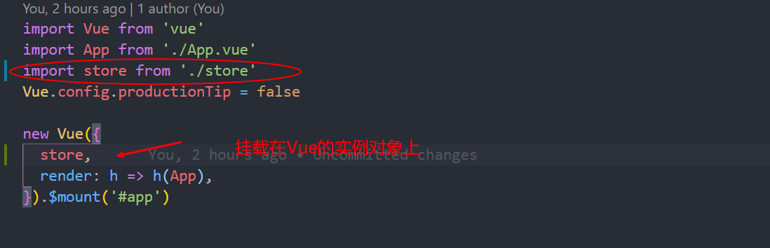 在main.js中将store实例对象挂载在Vue 的实例对象上,并且可以全局的通过this.$store的方式,使用$store的属性跟跟方法。