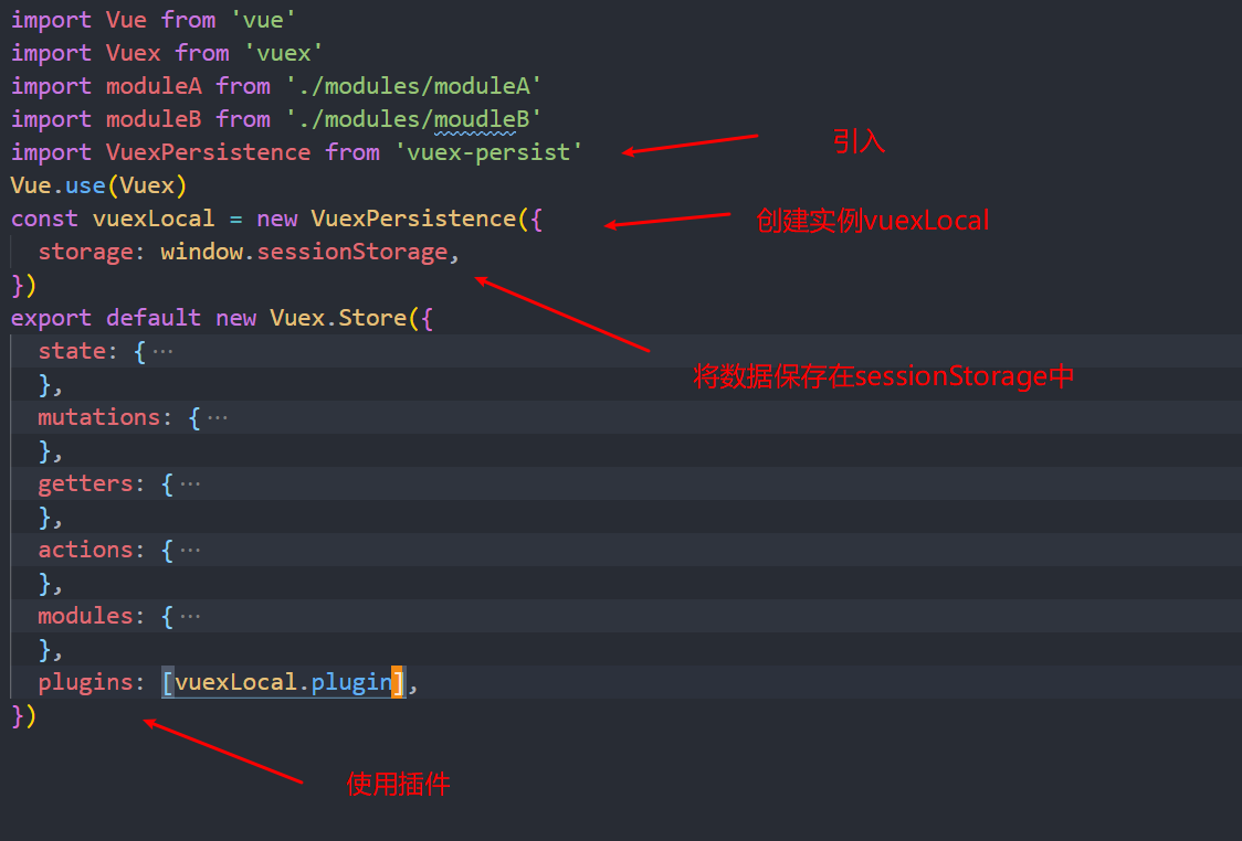 const vuexLocal=new VuexPersistence({ storage:window.sessionStorage }) -
