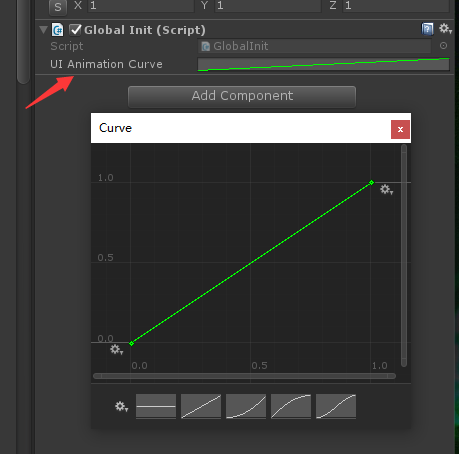 public AnimationCurve UIAnimationCurve = new AnimationCurve(new Keyframe(0f, 0f, 0f, 1f), new Keyframe(1f, 1f, 1f, 0f));