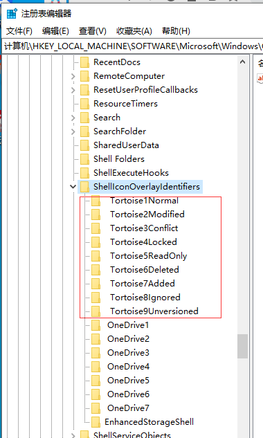 HKEY_LOCAL_MACHINE->SOFTWARE->Microsoft->Windows->CurrentVersion->Explorer->ShellIconOverlayIdentifiers