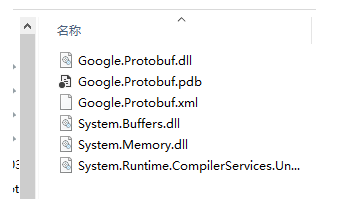 这就生成出来了四个dll文件,Google.Protobuf.dll,System.Buffers.dll,System.Memory.dll,System.Runtime.CompilerServices.Unsafe.dll