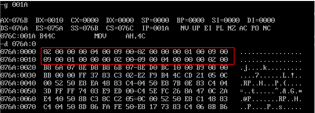 076C, 寄存器(CS) = 076E