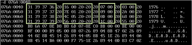 依次相加之后,查看逻辑段data1, data2, data3对应的内存空间数据原始值的debug命令: