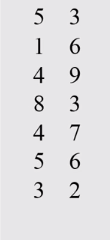 val array = Array("8 3", "5 6", "5 3", "4 9", "4 7", "3 2", "1 6")