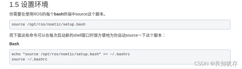 第二种方法 - 更新环境,其实是最笨的办法,我们知道在ROS安装指导中,官网有关于设置环境的部分