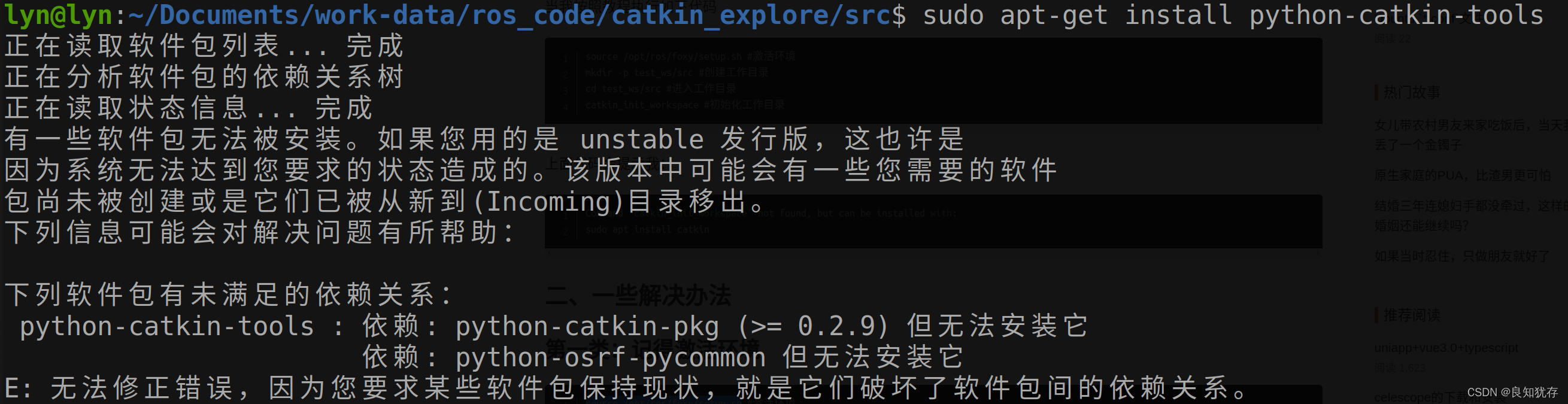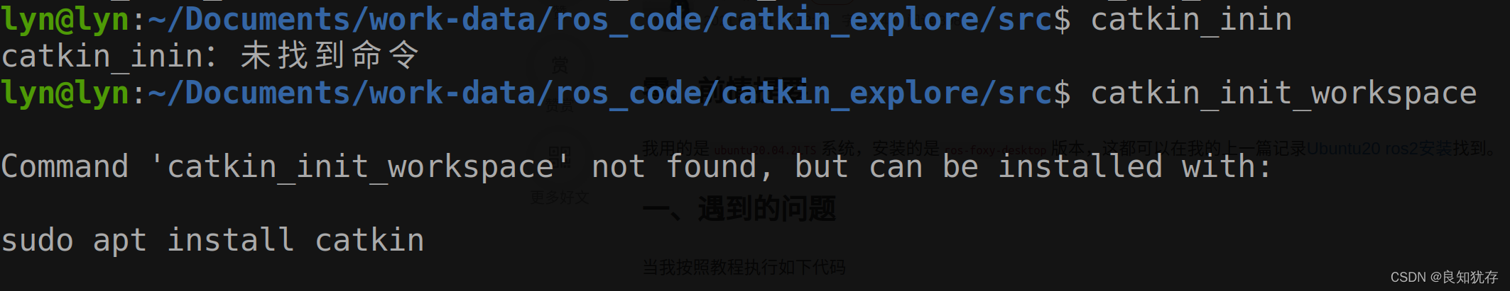 最近使用ros时候遇到这样一个问题,使用catkin相关命令,发现系统提示没有该命令。