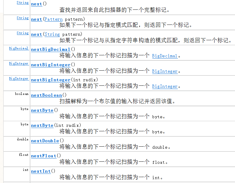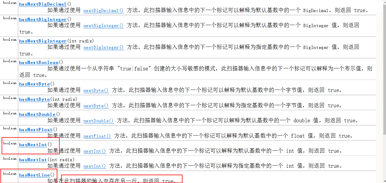 其实上图的意思就是,比如:nextlnt():只读取int值,就是只能读取整数类型的数据,如果输入了非整型的数据(浮点型字符串等)就会报错。