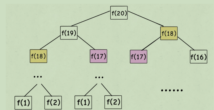 假设 n = 20,请画出递归树 想要计算第N个数是多少?