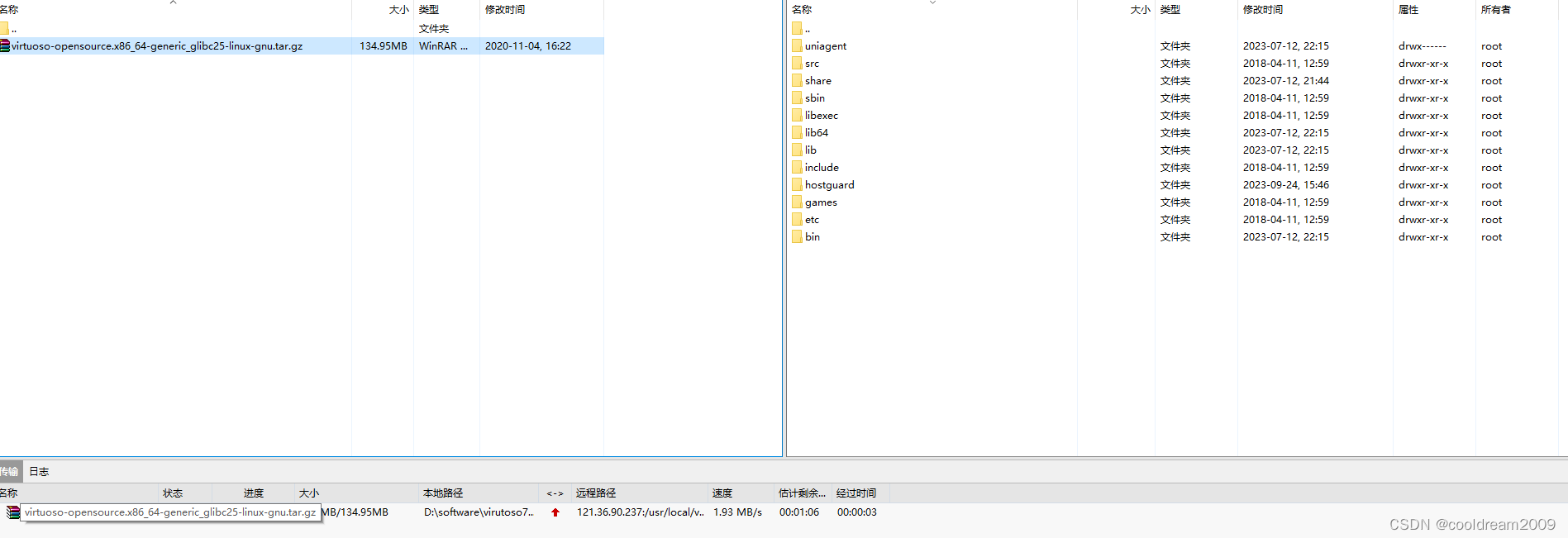 3.1 将virtuoso安装文件上传到云耀云服务器。