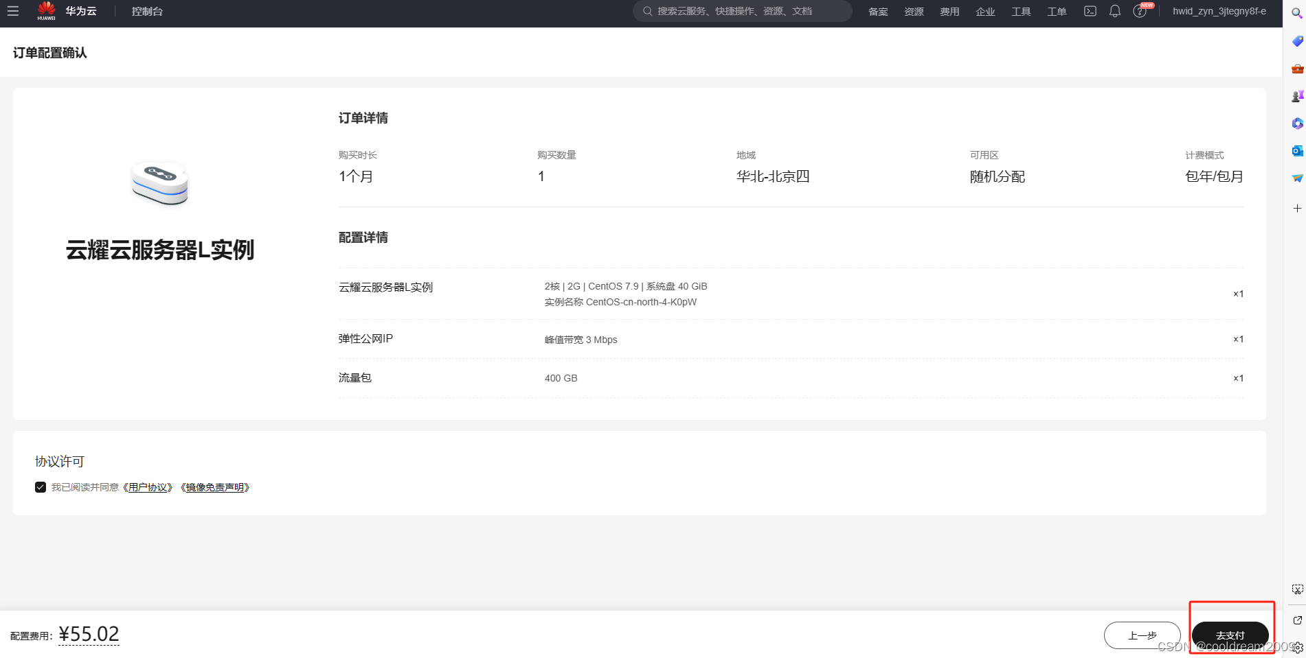 1.4 服务器创建。 一旦完成订单并成功支付,华为云将开始创建您的云服务器。