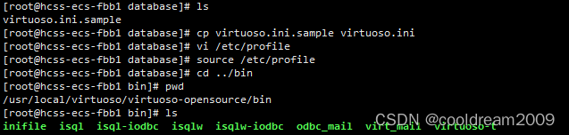 编辑后,利用source /etc/profile使得profile文件生效,然后就可以操作virtuoso了。