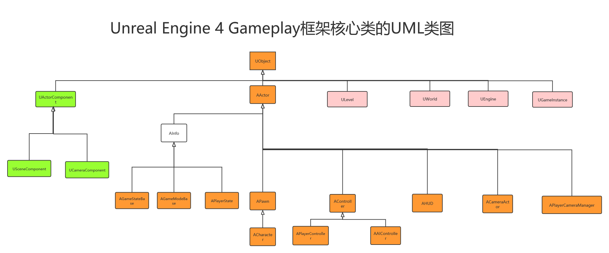 下图是基于ue4 Gameplay框架核心类的UML类图: