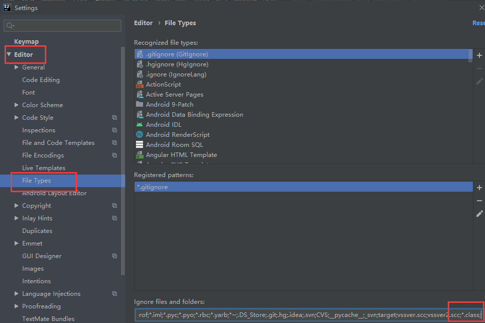 出现原因:git提交代码的时候,为了不想把编译的后的class文件提交,所以在 file-》setting-》Editor->File Types 下添加了忽略*.class文件,导致所有的类加载不到,才出现所有的类报错。去除*.class 即可