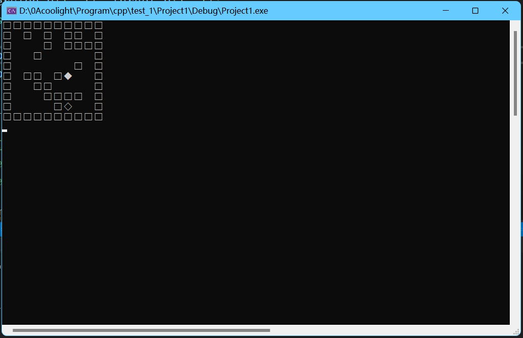 #include "mapClass.h" /*初始化地图 * * 把map置零后设置边界 */ void mapClass::new_map() { memset(map, 0, Map_size * Map_size);//清零 for (int num = Map_size; num--;) //设置边缘障碍物 { map[num][0] = 1; map[0][num] = 1; map[num][Map_size - 1] = 1; map[Map_size - 1][num] = 1; } } /*刷新地图 * * 由于在auto_find_way()中会修改地图中的值作为方向标记 * 移动后会残留一些标记,此函数将会把这些标记清理(即把标记置回0) */ void mapClass::reflash_map() { for (int x = Map_size - 1; --x;) for (int y = Map_size - 1; --y;) map[x][y] = map[x][y] % 1000; /*方向标记为1000,2000,3000 和 4000,故 %1000 即可保留其他东西并清理标记*/ } /*自动寻路 * * 传参: * &target_p:传出参数,找到路径后写入目标的坐标 * 返回值: * 有路径返回true,没有返回false * * 基于队列寻找到达目标的最优路径,会在地图上留下方向标记 * 如果找到,在其他函数可以 以目标位置开始,通过方向标记倒推回起点,即为路径 */ bool mapClass::auto_find_way(Point& target_p) { coolQueue out_queue(0, 0, 0); for (int push_num = 1; push_num;) { push_num = 0; //如果push_num在while循环后仍然为0,说明队列空且无路可走了 while (this->pop(out_queue)) { for (int i = 1, temp_x, temp_y; i <= 4; ++i)//判断它的旁边4个位置 { //此处使用sin()是为了在不同i时(temp_x, temp_y)指向以out_queue为中心的不同方向 //效果同auto_move()中的switch()的使用 temp_x = out_queue.cool_p.x + int(sin(PI / 2 * (i - 2.0))); temp_y = out_queue.cool_p.y + int(sin(PI / 2 * (i - 3.0))); switch (map[temp_x][temp_y]) { case 0: //可走 { map[temp_x][temp_y] = i * 1000; //写入方向标记 this->push(temp_x, temp_y, 0); //入队 ++push_num; }break; case 10: //抵达目标位置 { map[temp_x][temp_y] += i * 1000; target_p.x = temp_x; //写入目标位置 target_p.y = temp_y; this->clear(); //清空队列 return true; }break; } } if (out_queue.data == -1) //每一轮队列的最后一个的data标记为-1 break; //以起点位置往外一步为一轮 } if (this->End_p != NULL) this->End_p->data = -1; } this->clear(); return false; } /*自动移动(递归函数) * 传参: * * 后序递归:先调用递归,再移动地点 * 因此此函数目的是一开始传入目标位置, * 再以地图上的方向标记倒推上一个位置, * 直到回到起点位置则开始移动,每次移动调用show()刷新地图显示 * 即可实现从起点到终点移动的效果 */ void mapClass::auto_move(int in_x, int in_y) { /*switch ()可替换为 * temp_x = in_x + int(sin(PI / 2 * (map[in_x][in_y] / 1000)); * temp_y = in_y + int(sin(PI / 2 * (map[in_x][in_y] / 1000 - 1.0)); */ int temp_x = in_x, temp_y = in_y; switch (map[in_x][in_y] / 1000) //解析地图标记 { case 0:return; break; case 1:++temp_x; break; case 2:++temp_y; break; case 3:--temp_x; break; case 4:--temp_y; break; } /*由于函数是从终点位置递归回起点的,所以上一个调用此函数的应该是更接近终点的 * 因此此函数接受的传入值(in_x, in_y)是下一个移动点 * (temp_x,temp_y)为本次的移动点 */ auto_move(temp_x, temp_y); //递归调用,让起点移动到本位置(即temp_x, temp_y) map[temp_x][temp_y] = 0; //把现在的位置清零 map[in_x][in_y] = 100; //把下一个移动点置100,即可实现从现在的位置移动到下一个位置的效果 show_map(); //显示打印 Sleep(Sleep_num); return; } /*构造函数 * 传参: * in_p:起点位置 */ mapClass::mapClass(const Point& in_p) { new_map(); persion_p = in_p; } /*自动寻路主导函数 */ bool mapClass::auto_main() { show_map(); //显示地图 Sleep(Sleep_num); this->clear(); //清空队列 this->push(persion_p.x, persion_p.y, -1);//把起点入队 Point target_p; //目标坐标 if (auto_find_way(target_p) == false) //调用自动寻路 { reflash_map(); return false; } auto_move(target_p.x, target_p.y); //移动 reflash_map(); //清理地图残留标记 persion_p = target_p; //重置起点位置,抵达终点后起点即为终点 return true; } /*对地图写入数据标记 * * 传参: * in_data:写入的数据值 * num: 次数 * * 在地图的随机空位置上写入 num 次 in_data 标记 * * 存在bug: * 如果地图坐标已满,写入次数不够会陷入死循环 * 可考虑加入循环次数限制解决 */ void mapClass::into_map(int in_data, int num) { if (num <= 0) return; for (int i = 0, j = 0; num--;) { i = rand() % Map_size; j = rand() % Map_size; if (map[i][j] == 0) map[i][j] = in_data; else ++num; } } /*对地图写入数据标记 * * 传参: * in_x,in_y:写入的地图位置 * in_data: 写入的数据值 * * 返回值: * 如果(in_x, in_y)位置为空则写入成功返回true,否则返回false * * 在地图的(in_x, in_y)位置写入 in_data */ bool mapClass::into_map(int in_x, int in_y, int in_data) { if (map[in_x][in_y] == 0) { map[in_x][in_y] = in_data; return true; } return false; } /*打印显示地图 */ void mapClass::show_map() { system("cls"); //清空控制台输出 for (int i = 0; i < Map_size; ++i) { for (int j = 0; j < Map_size; ++j) switch (map[i][j] % 1000) { case 0: cout << " "; break;//空白位置 case 1: cout << "□"; break;//障碍物 case 10: cout << "◇"; break;//目标 case 100: cout << "◆"; break;//自己 default: cout << " "; break; } cout << endl; } } /*重置地图 * 传参: * in_p:起点位置 * * 清空地图,仅保留 起点 和 边界 标记 * 用于辅助循环刷新障碍物寻路的实现 */ void mapClass::clear_map(const Point& in_p) { for (int x = Map_size - 1; --x;) //把地图中的所有位置置零 for (int y = Map_size - 1; --y;) map[x][y] = 0; persion_p = in_p; //重新设置起点 map[in_p.x][in_p.y] = 100; }