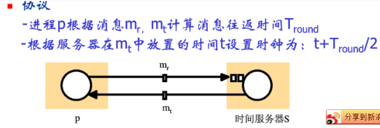 这个算法是系统内的时间同步,通常是系统内有一台机器油标准时间(例如UTC时间)的接收器,而其他的服务器时间需要与它同步。