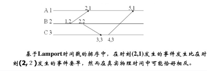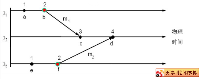 3. 按事件的时间戳大小为时间排序,任何两个时间不可能在同一时间发生,任何消息收到的时间都应该比发送的时间晚。