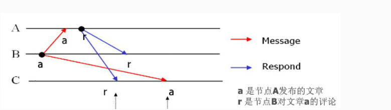 节点B发布一篇文章给A和C,节点A就此发表评论r,并传输给节点B和C,我们无法确定r的先后关系