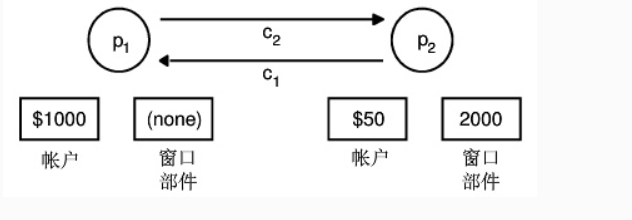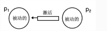 假如p1和p2执行一个分布式算法,每个进程都会请求另外一个进程的值。我们可以确定在一个瞬间,进程的状态时主动的还是被动的。