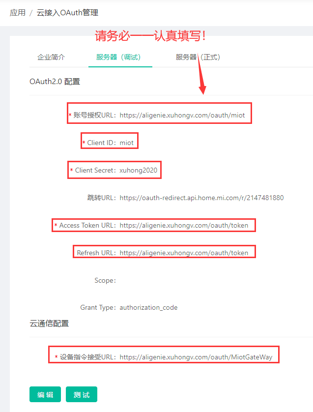 6. 设备指令接受URL:https://aligenie.xuhongv.com/oauth/MiotGateWay