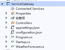 新建API项目ServiceGateway,通过NuGet引用Ocelot和Ocelot.Provider.Consul,Ocelot.Provider.Polly三个包,并修改启动项注册Ocelot和Consul: