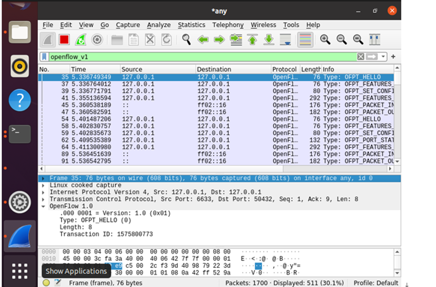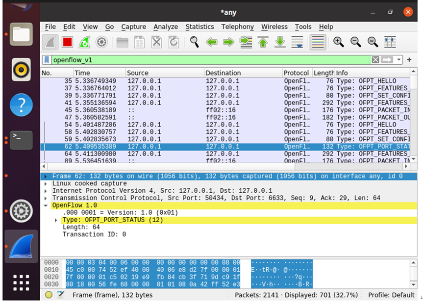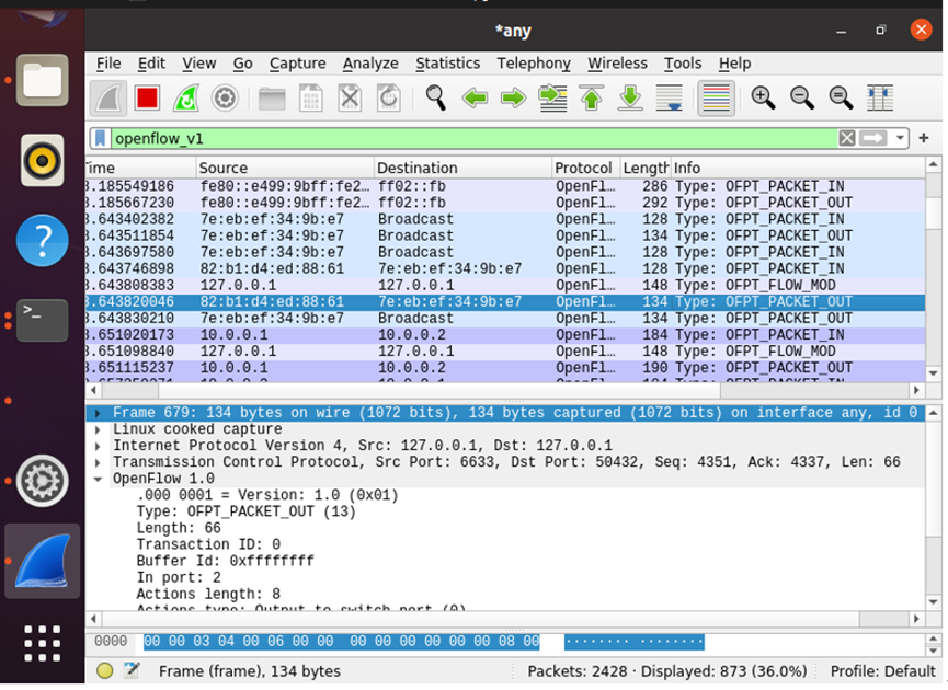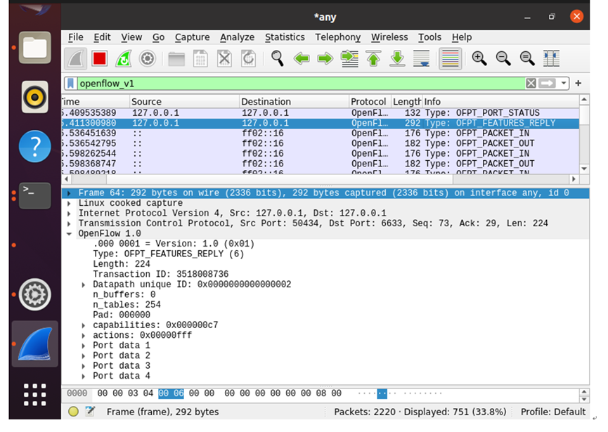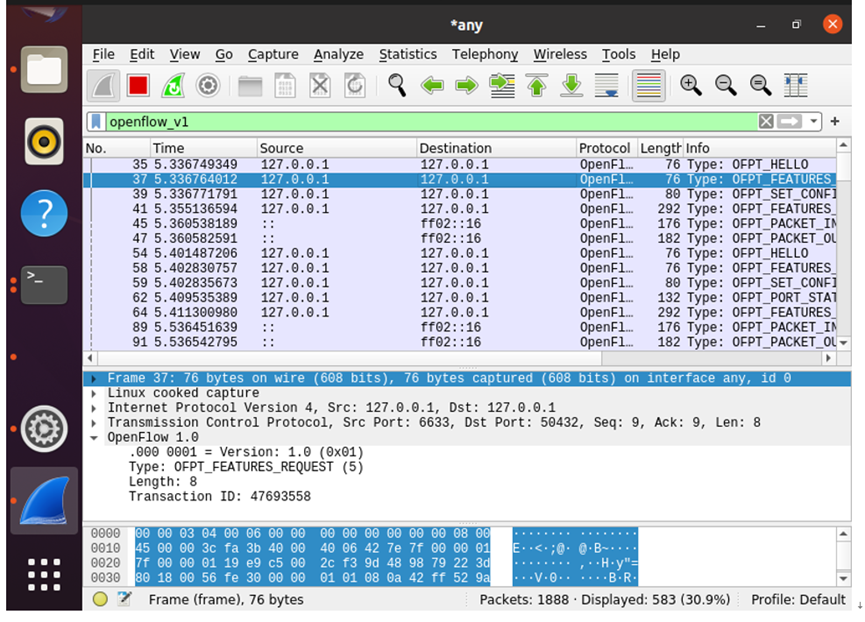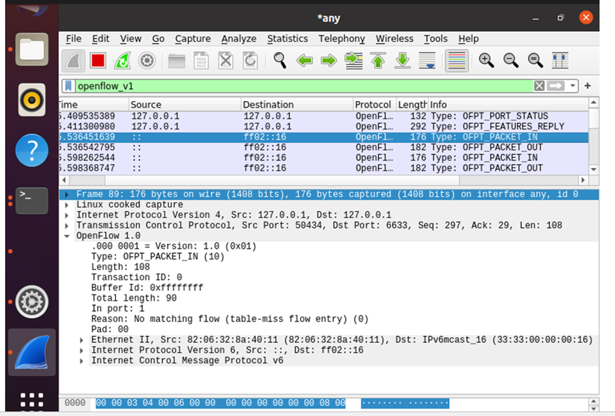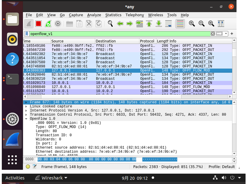 - 能够运用 wireshark 对 OpenFlow 协议数据交互过程进行抓包;