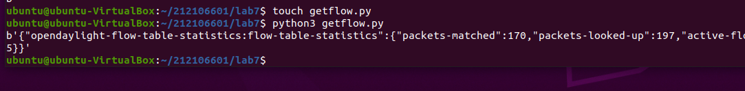 # getflow.py import requests from requests.auth import HTTPBasicAuth if __name__ == "__main__": url = 'http://127.0.0.1:8181/restconf/operational/opendaylight-inventory:nodes/node/openflow:1/flow-node-inventory:table/0/opendaylight-flow-table-statistics:flow-table-statistics' headers = {'Content-Type': 'application/json'} res = requests.get(url,headers=headers, auth=HTTPBasicAuth('admin', 'admin')) print (res.content)