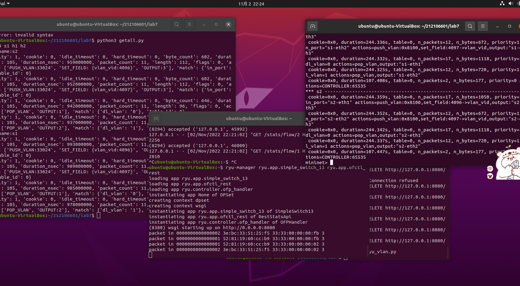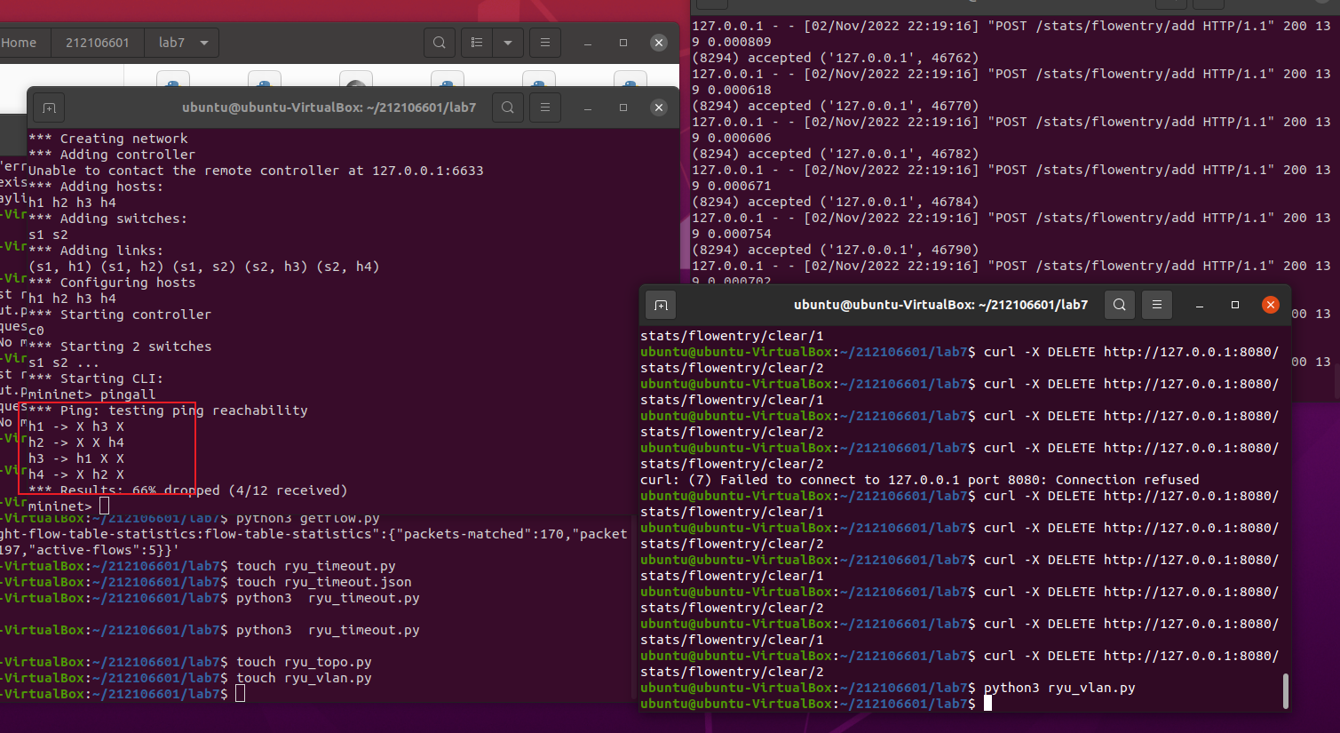 (2) 参考Ryu REST API的文档,基于VLAN实验的网络拓扑,编程实现相同的VLAN配置。
