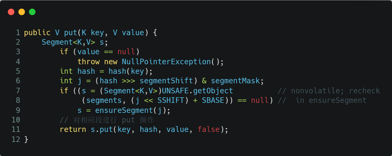 先定位到相应的 Segment ,然后再进行 put 操作。