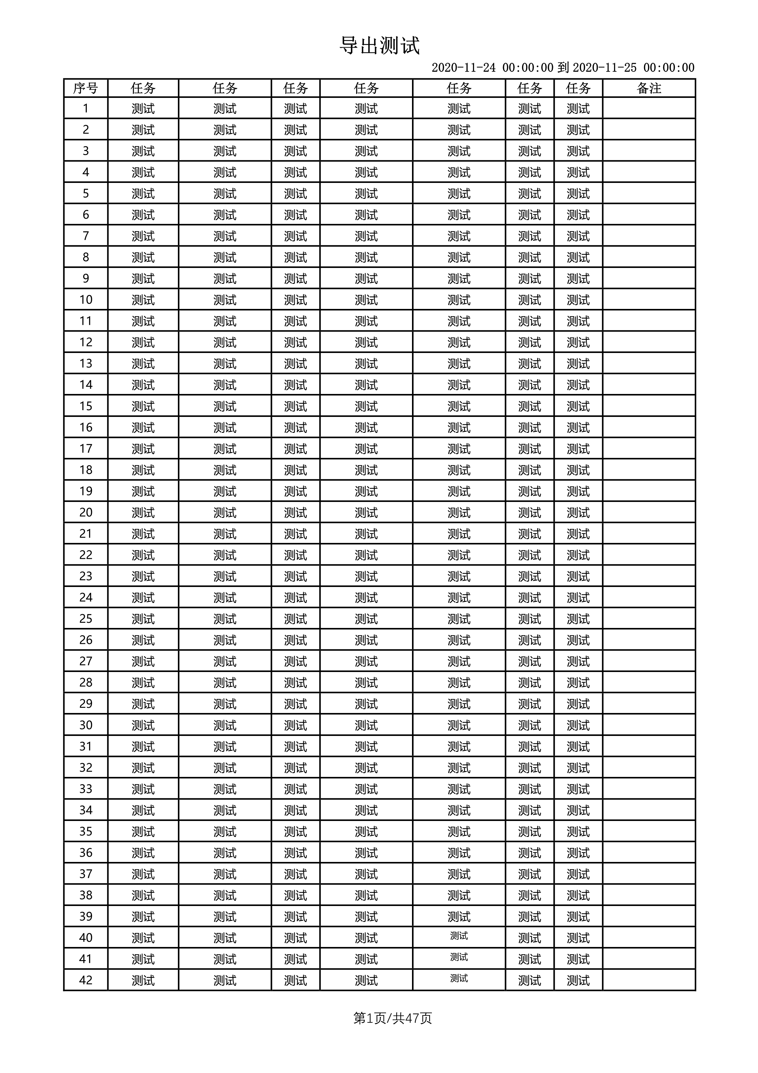 @Override public XWPFDocument exportFlight(HttpServletRequest request, HttpServletResponse response, String startTime, String endTime, String[] keys, String[] names) throws IOException { List<Object> list = new ArrayList<>();//此处获取指定时间范围内的数据 XWPFDocument doc = new XWPFDocument(); //设置页脚 WordUtil.createDefaultFooter(doc); //设置页边距 WordUtil.setMargin(doc, 1000, 1000, 500, 100); //设置标题 WordUtil.setParagraph(doc, "标题", "宋体", 16, 10, true, ParagraphAlignment.CENTER); //设置副标题 WordUtil.setParagraph(doc, startTime + "到" + endTime, "宋体", 10, 10, true, ParagraphAlignment.RIGHT); //获取列,第一列默认为序号 List<String> nameList = new ArrayList<>(Arrays.asList(names));