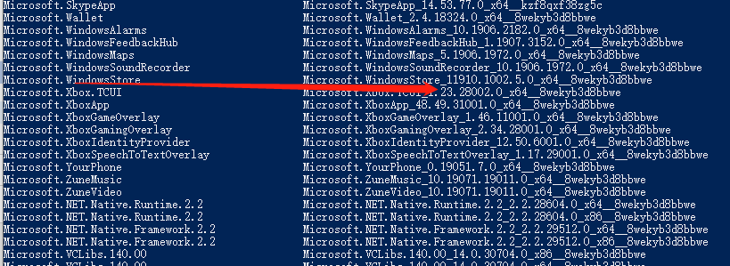 Get-AppxPackage -allusers | Select Name, PackageFullName