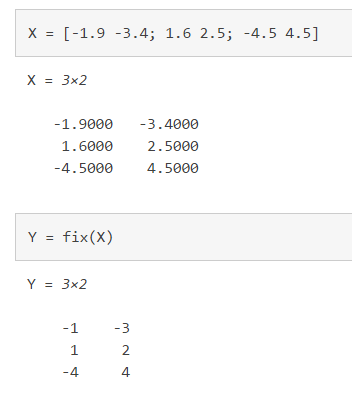Y = fix(X)