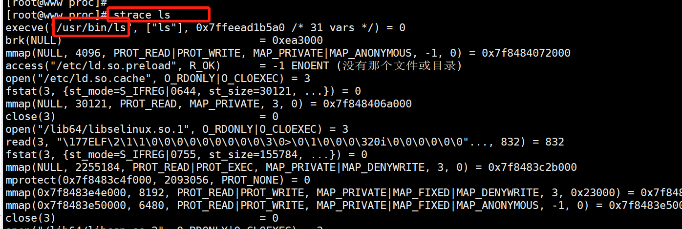 1: strace 常用 查看进程的系统调用, 如 strace + ls