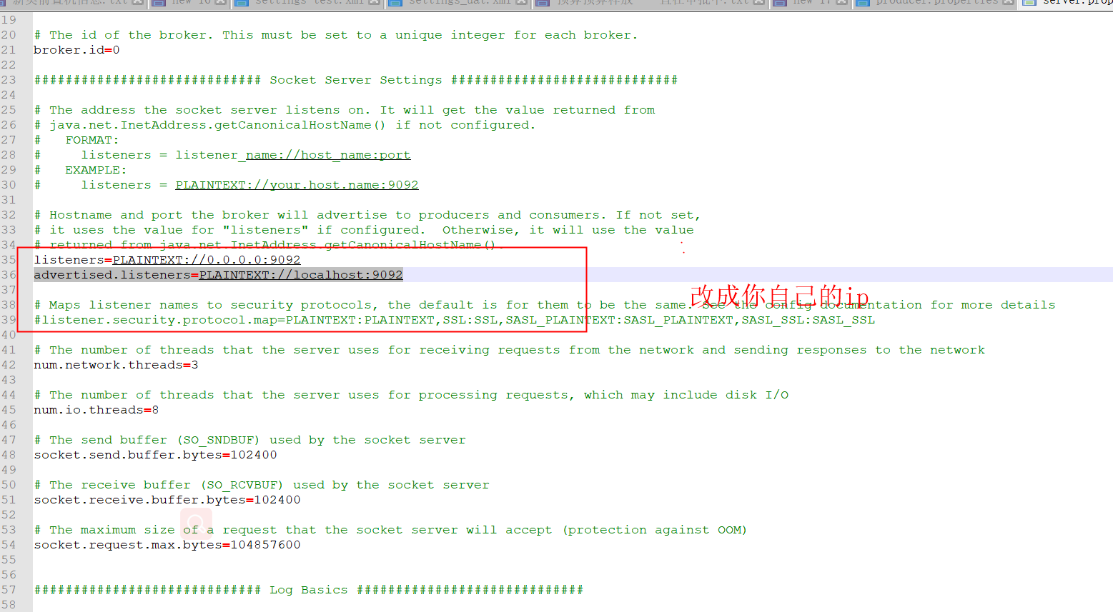 修改 kafka的配置文件,kafka\config\server.properties ,添加
