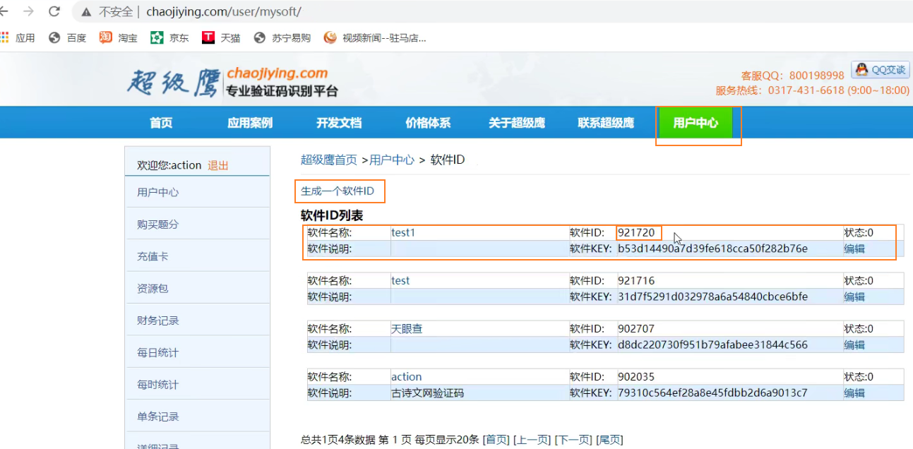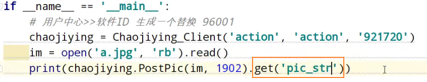 chaojiying = Chaojiying_Client('超级鹰用户名', '超级鹰用户名的密码', '96001') #用户中心>>软件ID 生成一个替换 96001