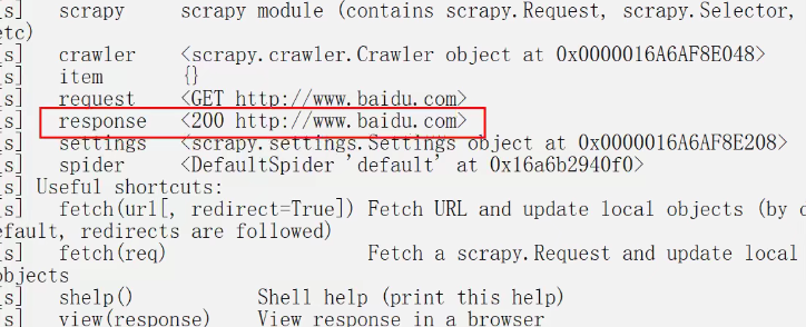 # 进入到scrapy shell的终端 直接在window的终端中输入scrapy shell 域名
