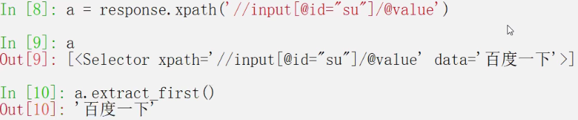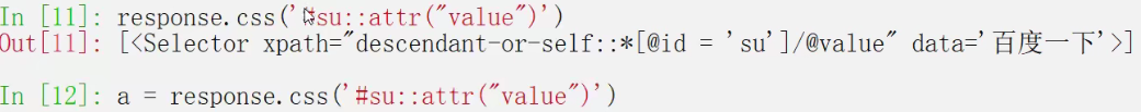 获取属性 :response.css('#su::attr(“value”)').extract_first()