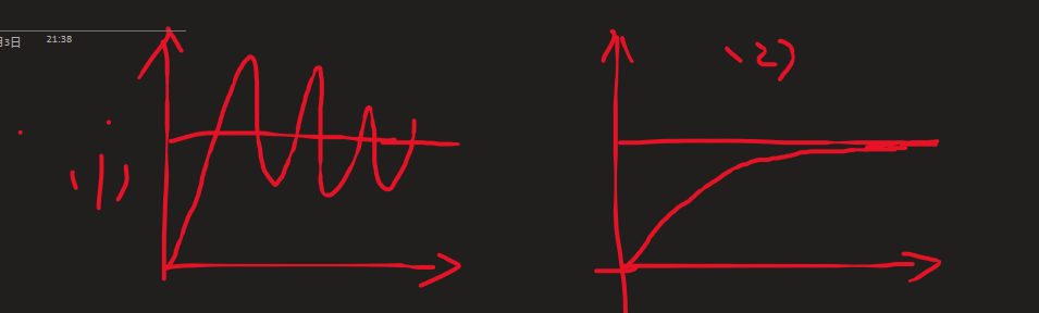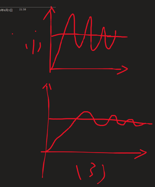 比例项P就是让当前测量值与目标值做差,得到的误差越大Kp的控制力度就越强因为它只会死板地判断离目标的距离,距离越大它要用力就越大,它的作用就是要快速响应误差,让系统更快趋近于目标值,但是因为它比较死板,就可能出现在靠近目标值的时候它的控制作用仍旧特别强,导致当前值一下子超出目标值,然后因为超出目标值就又有一个误差,可能让它更用力地控制系统向目标靠近,这时就很可能让系统一直在目标值上下抖动形成震荡。比如下图(1)。