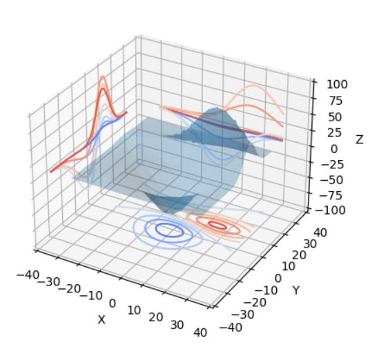 cset = ax.contour(X, Y, Z, zdir='x', offset=-40, cmap=cm.coolwarm)