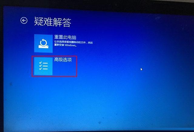 四、再接下来在疑难解答界面下方点击一下【高级选项】,如图所示。