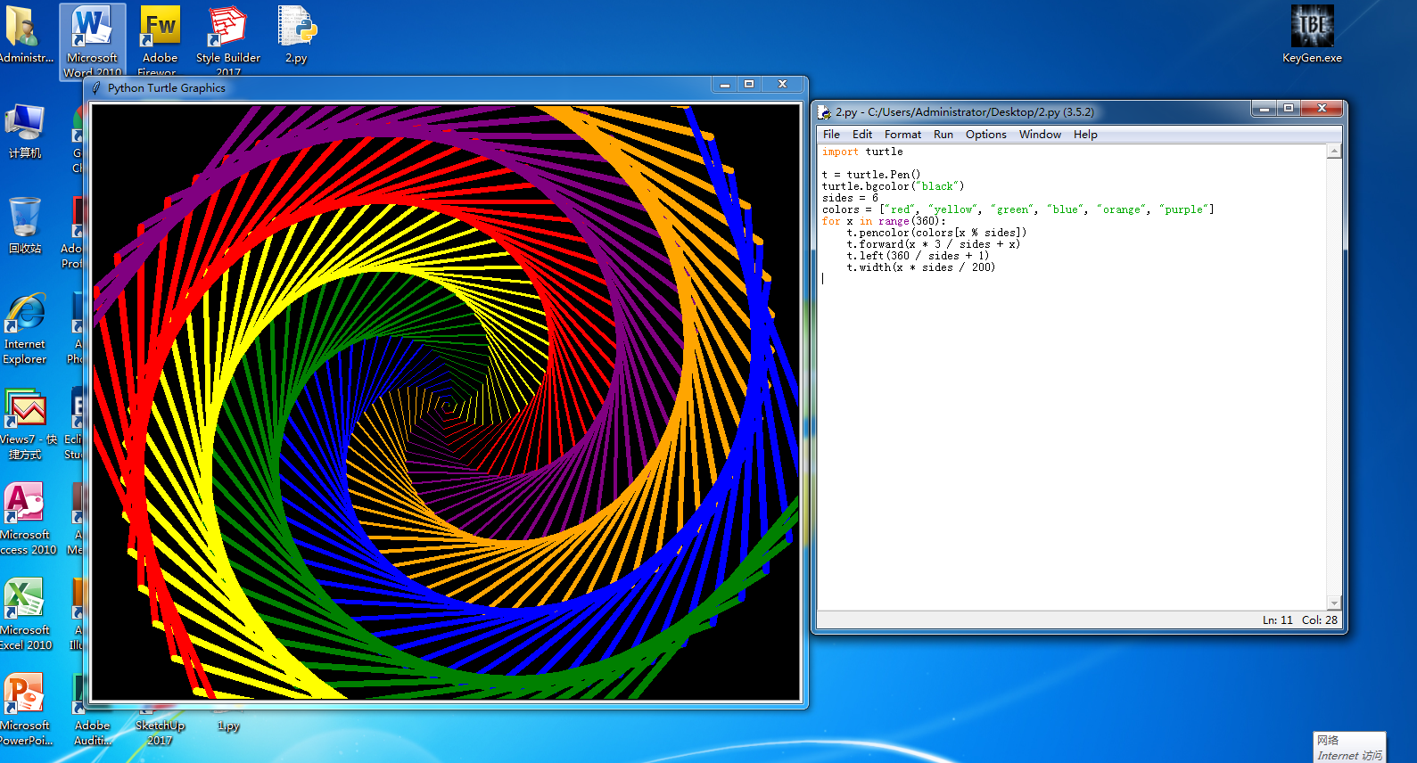 No.2 我希望我们的实验课可以紧张刺激,让人兴奋起来,让我们的理论知识在实战中体现出来,创新的思维可以充分调动起来,多实战,一点点成功的感觉就可以让我们感到十分满足。课下我尝试了关于turtle库的一些有趣绘图的方法,让我对Python的兴趣也越来越来浓厚。