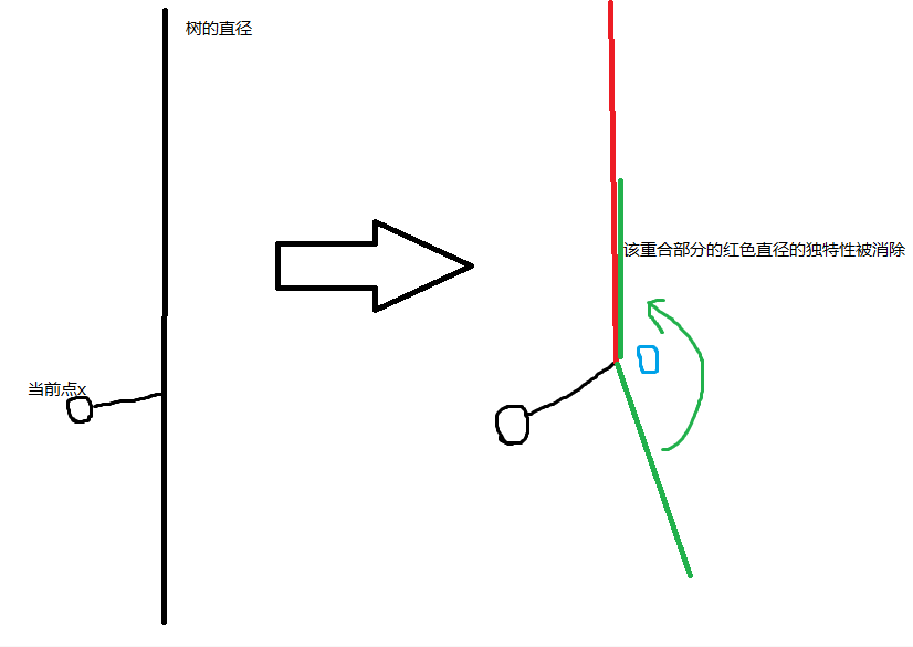 我们如果以当前点为根,那么下面的那一部分直径就会消除上面的那一部分的直径的部分独特点