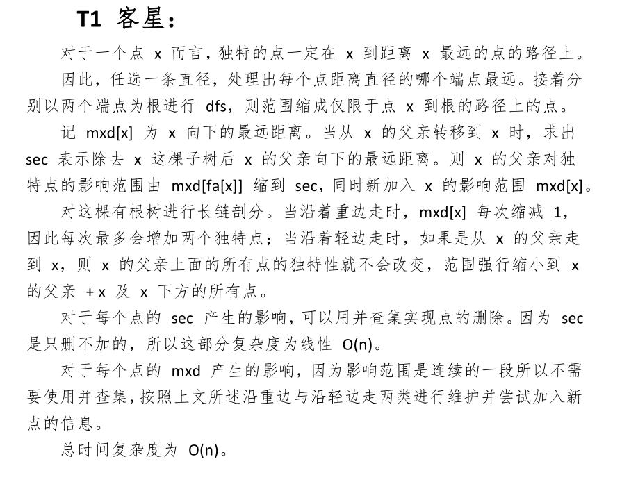 首先有一个性质:对于一个点,它的独特点都会分布在(它到整棵树的两个直径端点中较远的那一个端点的路径)上