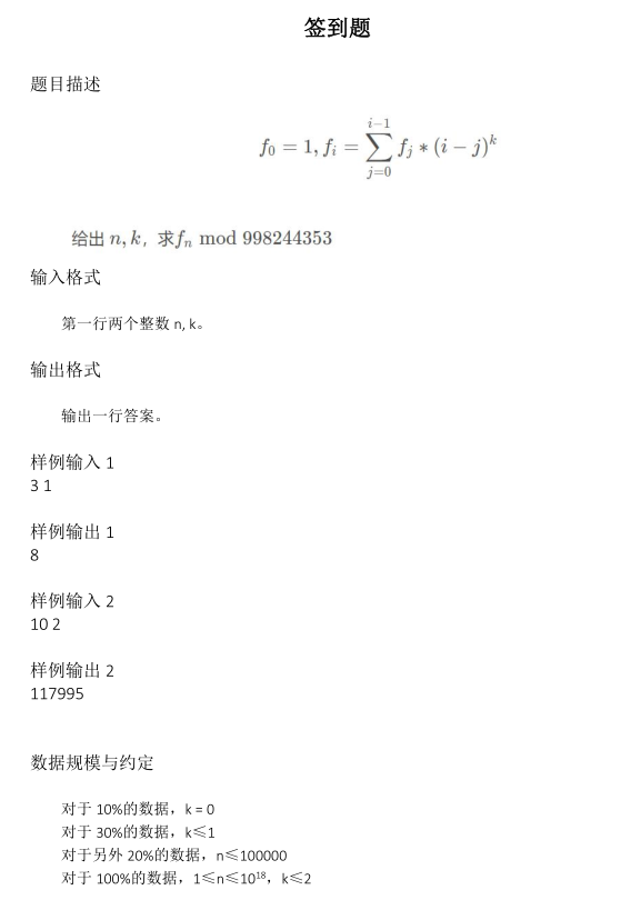 直接手算一下生成函数,再推出递推式就可以矩阵快速幂了