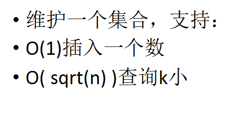 相当于写了一个O(1)insert,O(sqrt(n))query的set