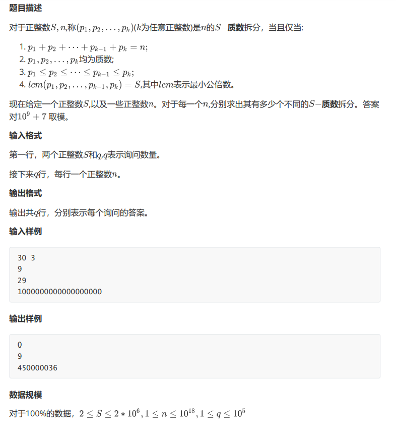 所以先把S分解一下质因数,如果有平方因子就全部都输出0
