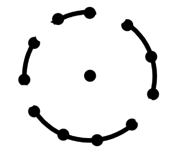 如图:(图中就有四个块,每个块都要派一个节点来与中心相连)