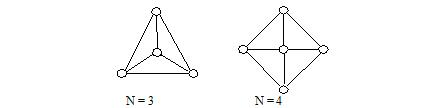 On birthday, Anthony got a toy. It is constructed with N+1(N>=3) balls and 2*N sticks. All balls are in a same plane. One of them is special, while the other N balls are connected to it by N sticks with the same length. The angles between any two adjacent sticks are equal. And finally, any two adjacent balls(except the central one) are connected by a stick.