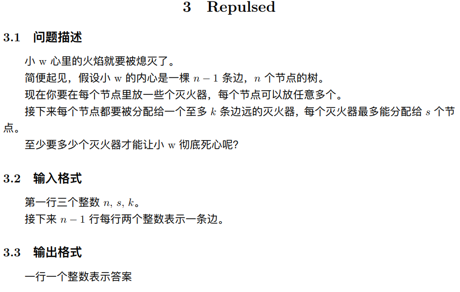 于是我们设f[i][k]表示i的子树中与i距离为k的未覆盖的点的个数